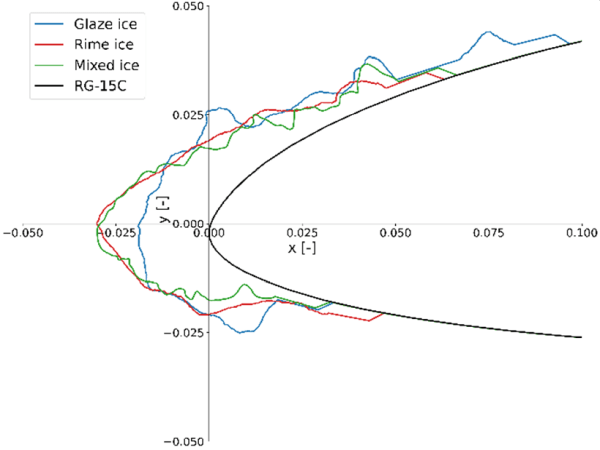Different ice shapes on the RG-15 airfoil. Figure: Johannes Oswald.